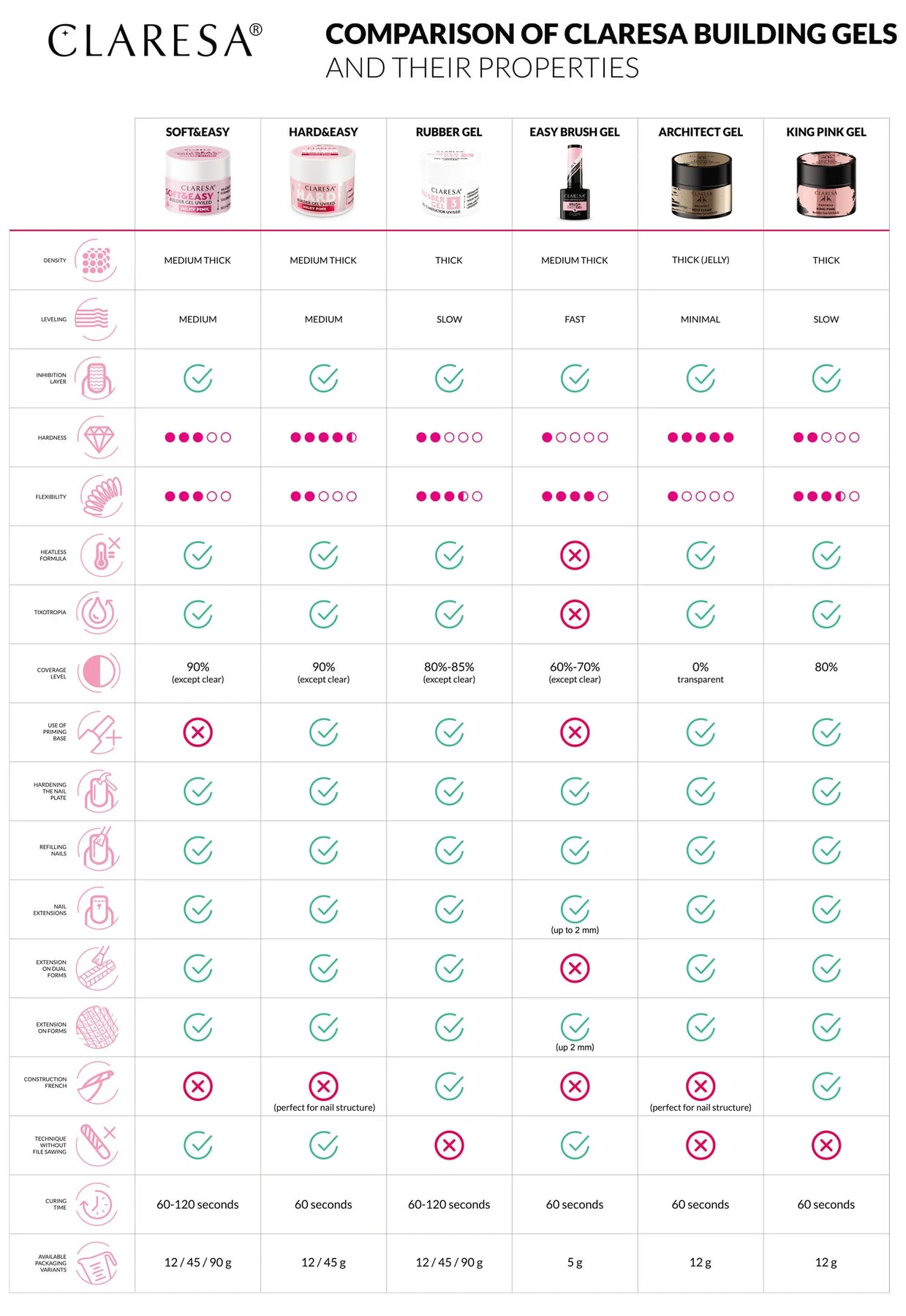 Reikalauja pagrindo – rekomenduojama naudoti Claresa Bonding Base for Gel.
